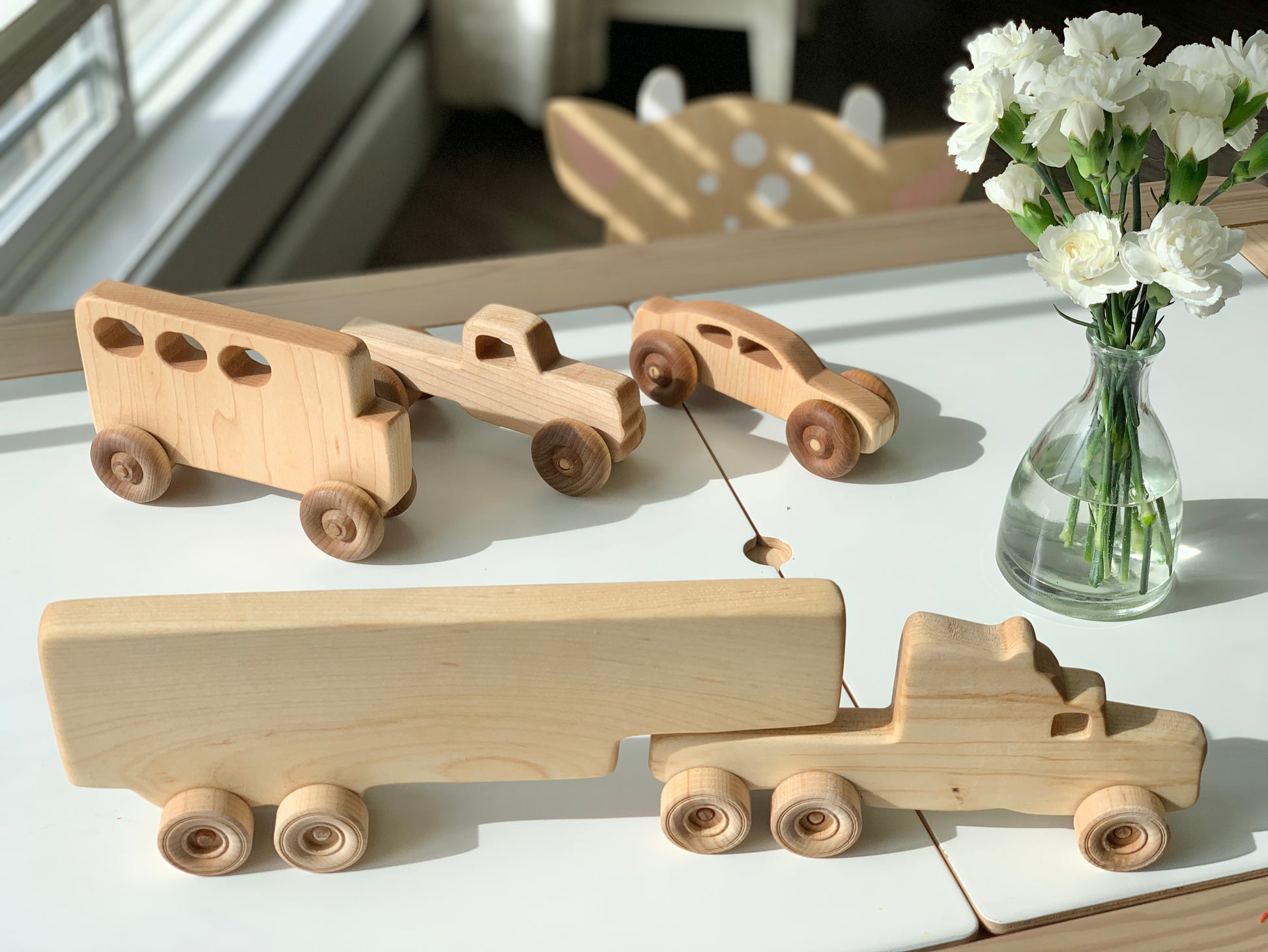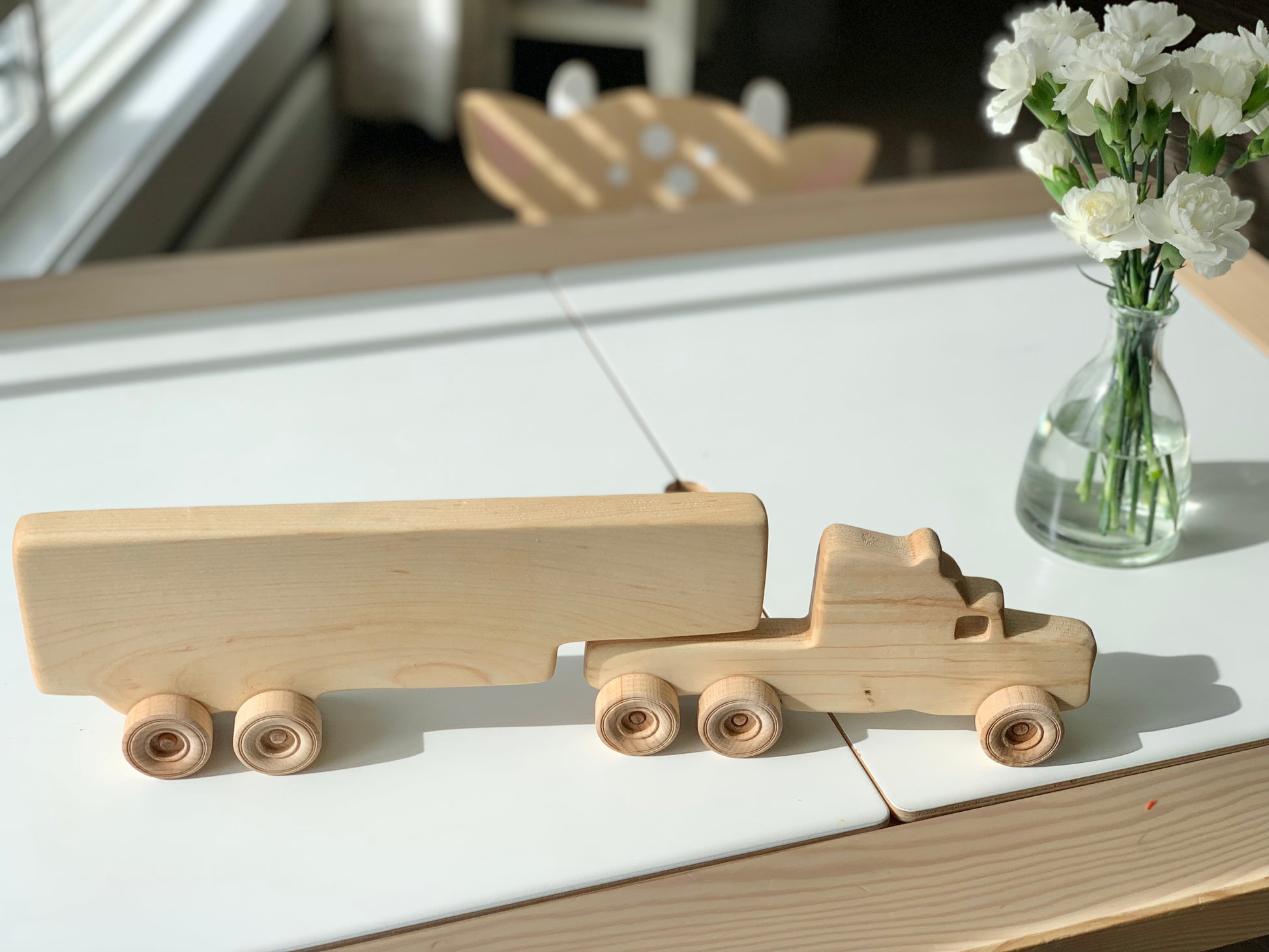 These wooden toy semi trucks make amazing gifts for children as well as add a decorative touch to a nursery or playroom.