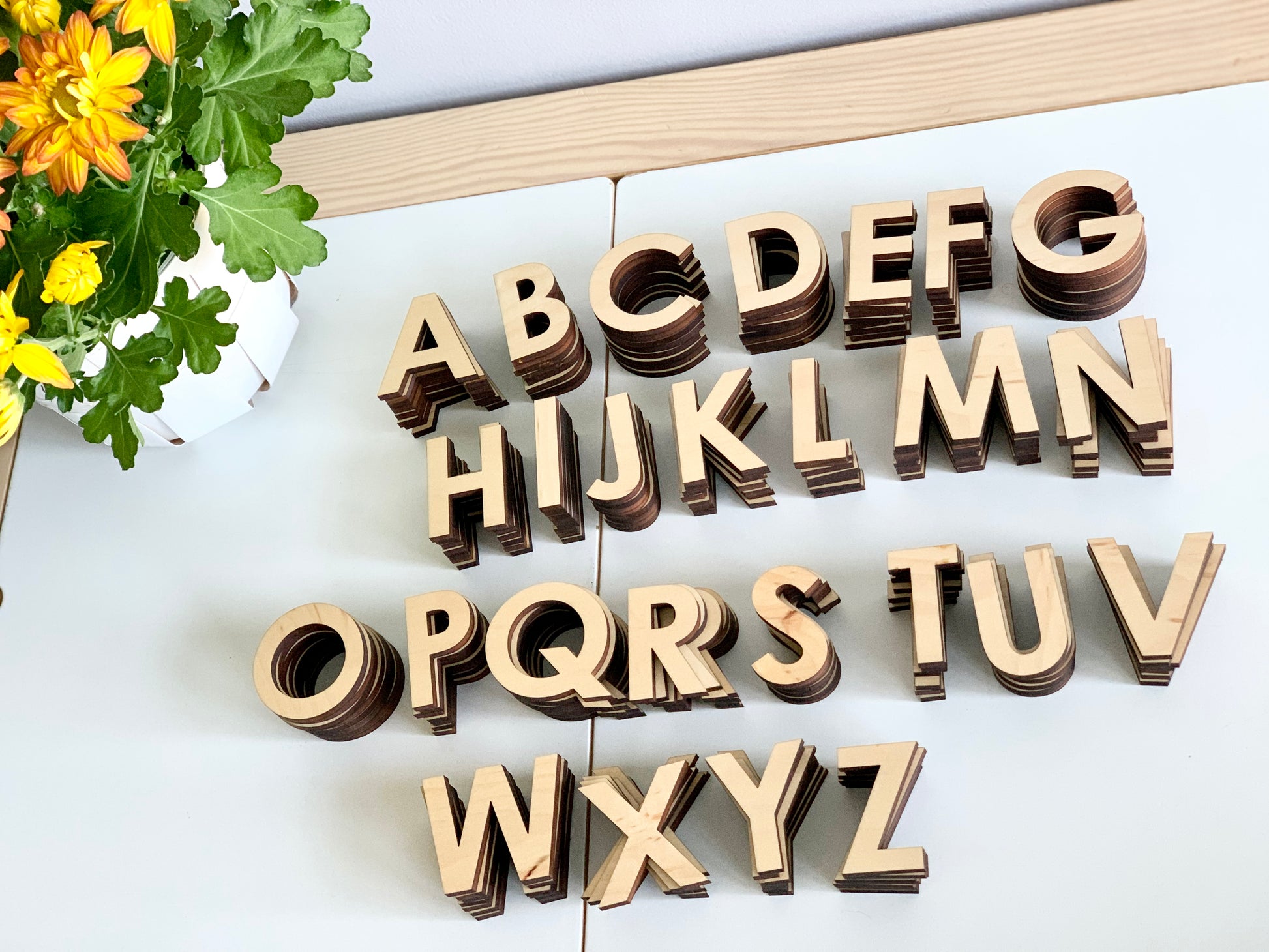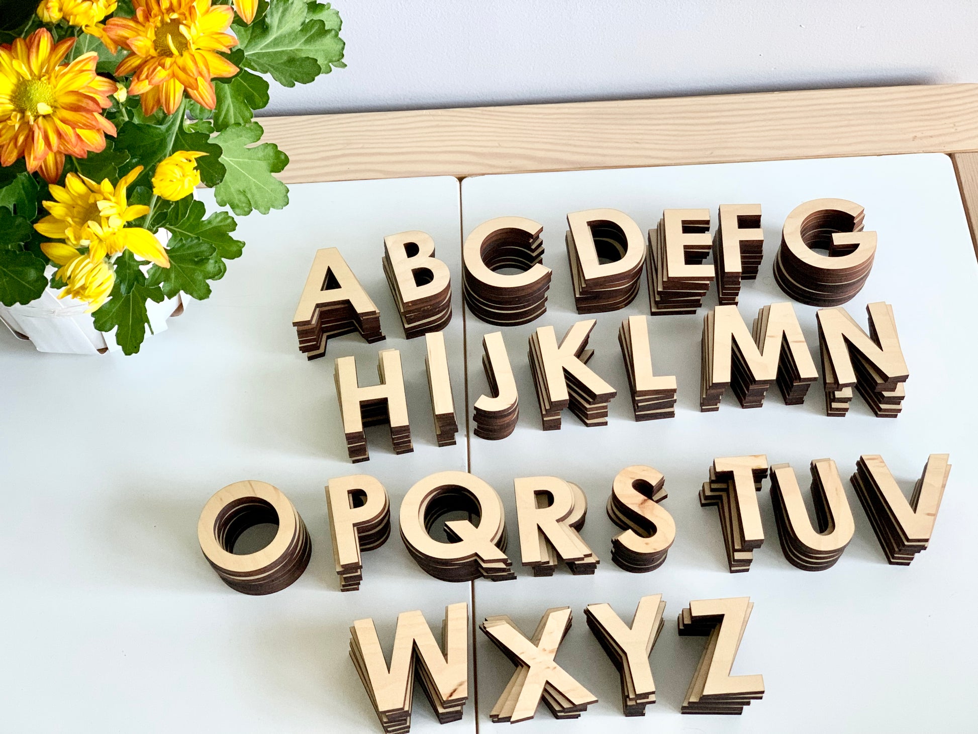Wooden Uppercase Alphabet • Movable Alphabet Set Maple